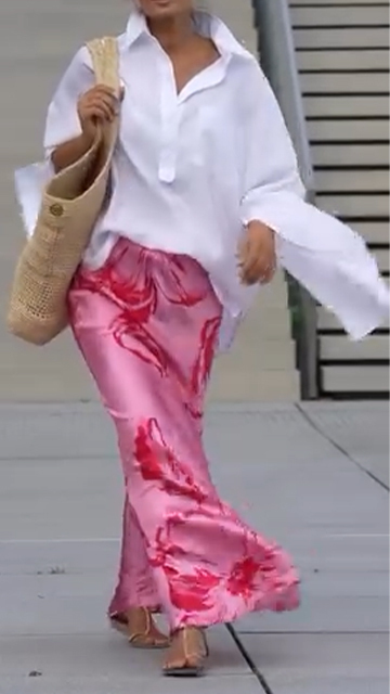 Ladies' Loose Collar Shirt with Printed Long Skirt Casual Set