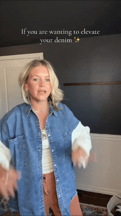 It’s impossible not to fall in love with this gorgeous Sweater Sleeve Denim Shacket!