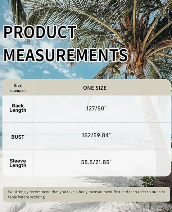 ONE SIZE FITS MOST - Our kaftan maxi dress is available in one size (chest: 59.84 inches, sleeve length: 21.85 inches, back length: 50 inches). It fits any style, simple, romantic or trendy.