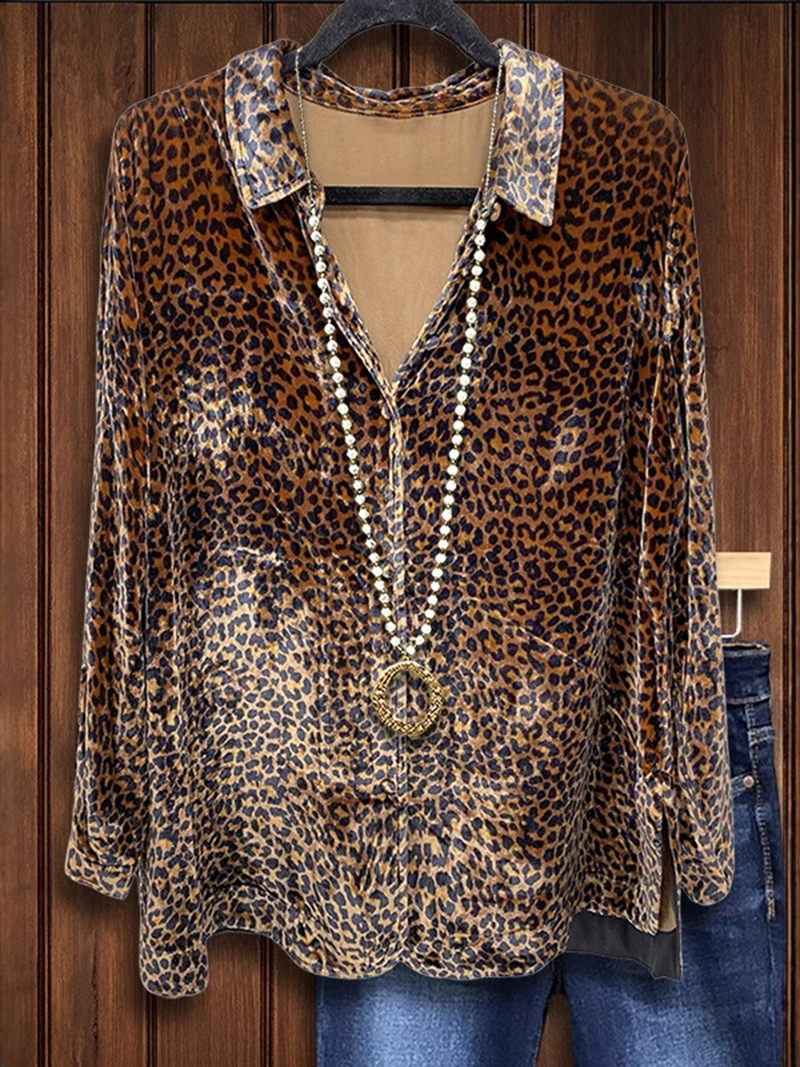 The leopard print blends wildness and retro style, giving off a relaxed yet sophisticated vibe. The lapel and button closure balance a formal look for work with a casual feel. The loose long sleeves are flattering and easy to layer, and can be worn alone or as an inner layer