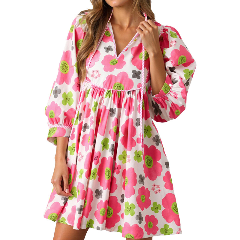 Women's V-Neck Puff-Sleeve Floral Mini Dress(BUY 2 FREE SHIPPING)