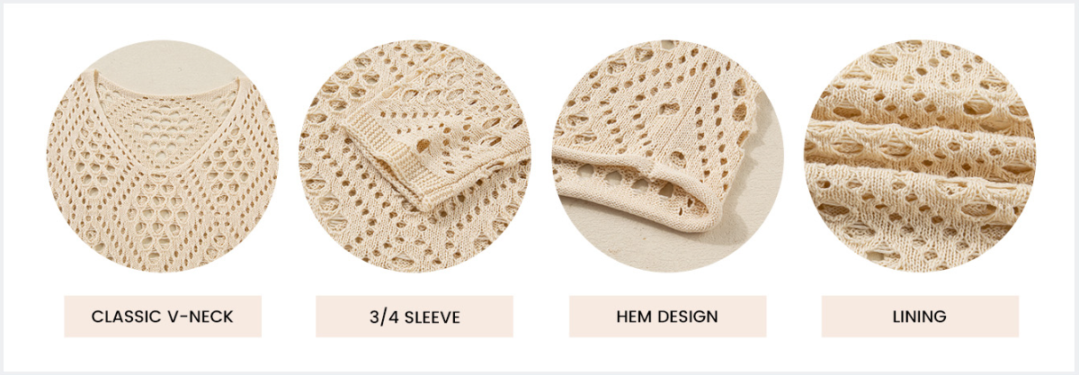 Features a flattering V-neckline, short sleeves, and intricate crochet detailing. Creates a delicate boho-inspired silhouette, combining modesty with sensual allure.